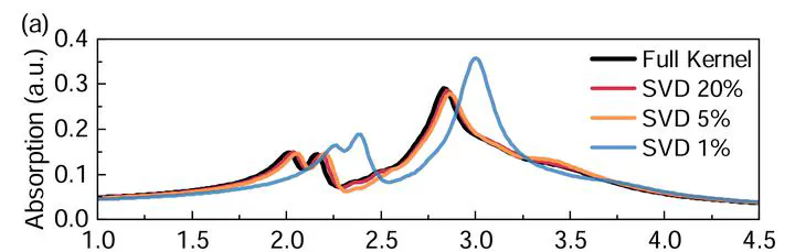 Many-body electron-hole interactions are essential for understanding non-linear optical processes and ultrafast spectroscopy of materials. Recent first principles approaches based on nonequilibrium Green’s function formalisms, such as the time-dependent adiabatic GW (TD-aGW) approach, can predict the nonequilibrium dynamics of excited states including electron-hole interactions. However, the high dimensionality of the electron-hole kernel poses significant computational challenges for scalability. Here, we develop a data-driven low-rank approximation for the electron-hole kernel, leveraging localized excitonic effects in the Hilbert space of crystalline systems. Through singular value decomposition (SVD) analysis, we show that the subspace of non-zero singular values, containing the key information of the electron-hole kernel, retains a small size even as the k-grid grows, ensuring computational feasibility with extremely dense k-grids for converged calculations. Utilizing this low-rank property, we achieve at least 95% compression of the kernel and an order-of-magnitude speedup of TD-aGW calculations. Our method, rooted in physical interpretability, outperforms existing machine learning approaches by avoiding intensive training processes and eliminating time-accumulated errors, providing a general framework for high-throughput, nonequilibrium simulation of light-driven dynamics in materials.